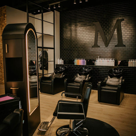 This brand-new build was transformed into a high-end hair salon with every detail custom-designed. We installed four luxe wash stations, built custom double-sided styling stations, and designed a dramatic industrial glass wall for the shampoo area. The layout includes private office space, restrooms, a welcoming reception, retail displays, and elevated finishes throughout, blending form and function flawlessly.